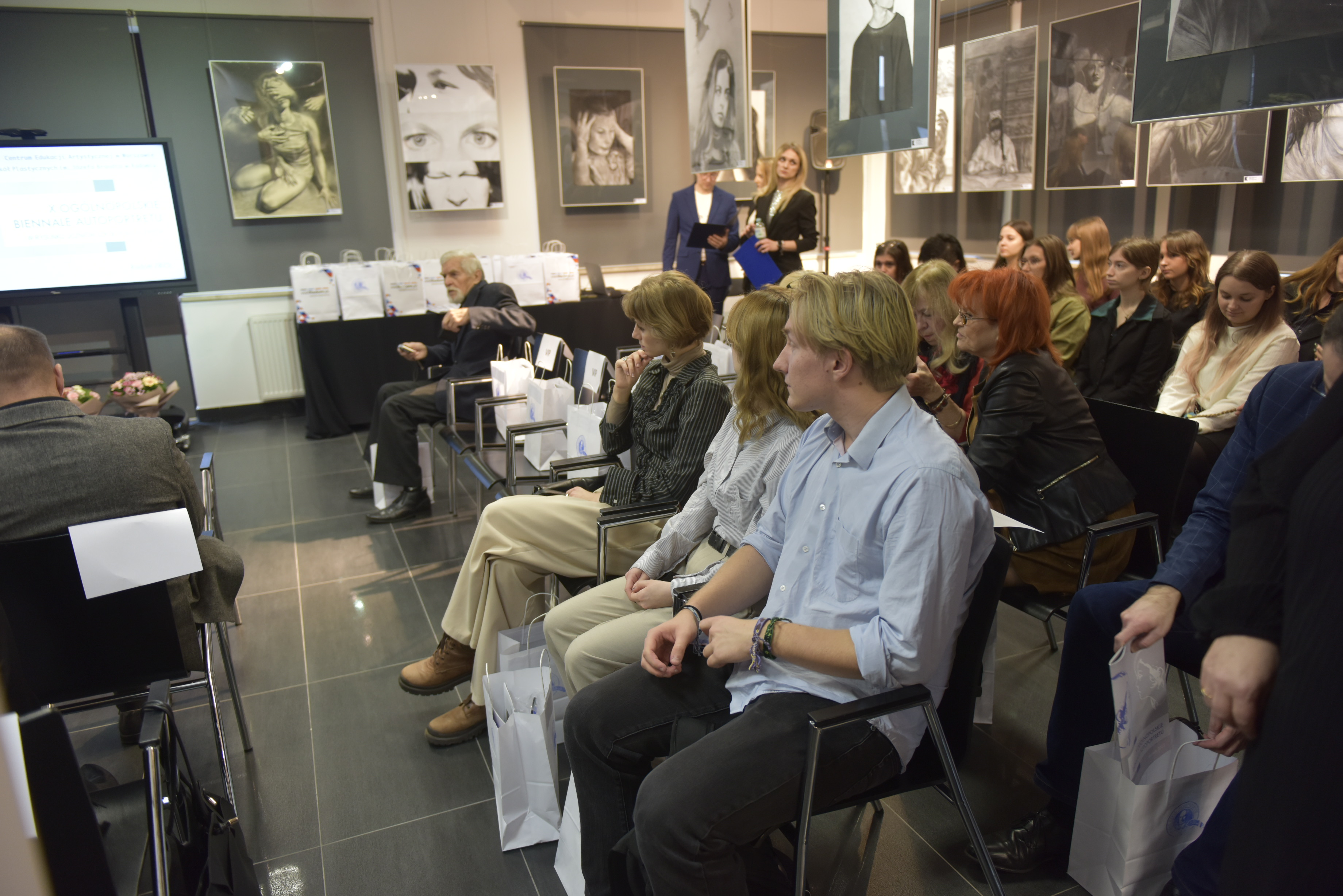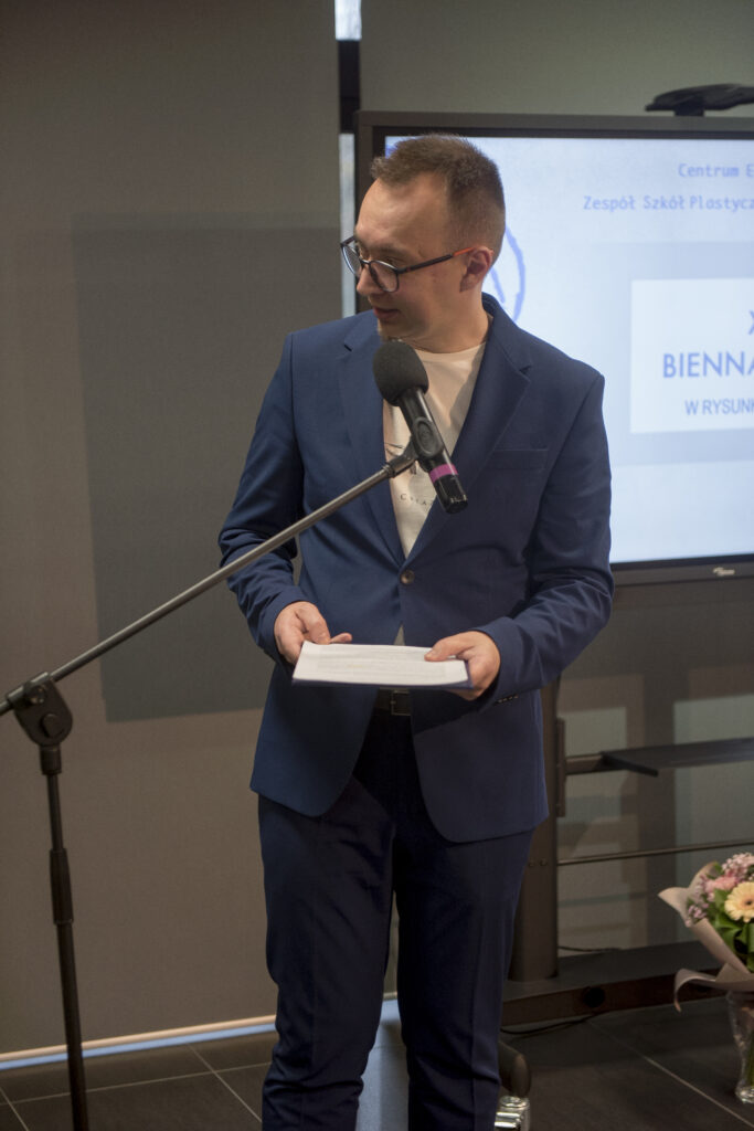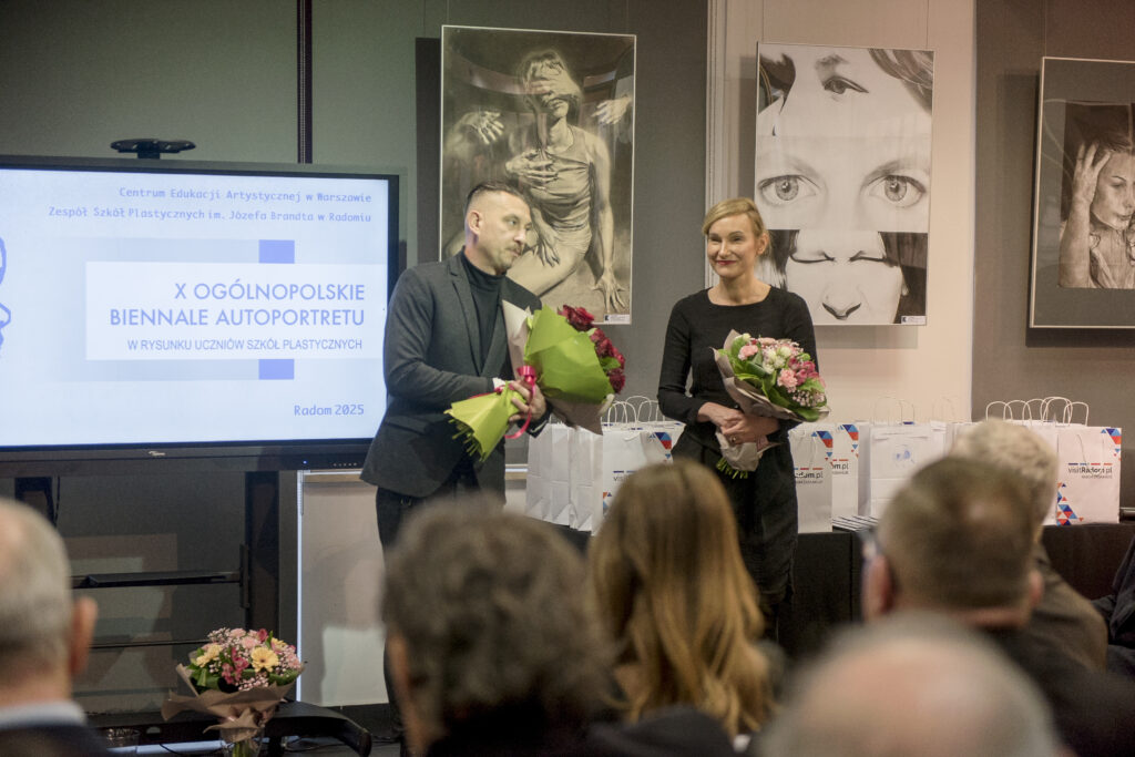Za nami podsumowanie jubileuszowej 10. edycji Ogólnopolskiego Biennale Autoportretu w Rysunku Uczniów Szkół Plastycznych. Wydarzenie było pełne emocji, wzruszeń i artystycznych spotkań. Już od początku towarzyszyła mu wyjątkowa atmosfera, w którą wprowadziły nas uczennice Liceum Sztuk Plastycznych: Kinga Leszczyńska, Zofia Zamorska, Zofia Mroczek oraz Kalina Pudzianowska, a oprawę muzyczną zapewniła Hanna Dyczkowska. Scenariusz i przygotowanie części artystycznej opracowały nauczycielki języka polskiego – Magdalena Kania-Szary oraz Tatiana Laskowska.