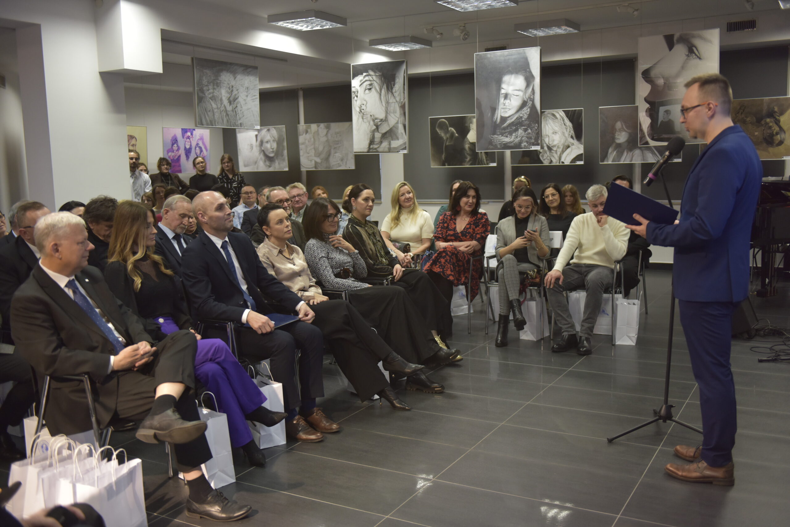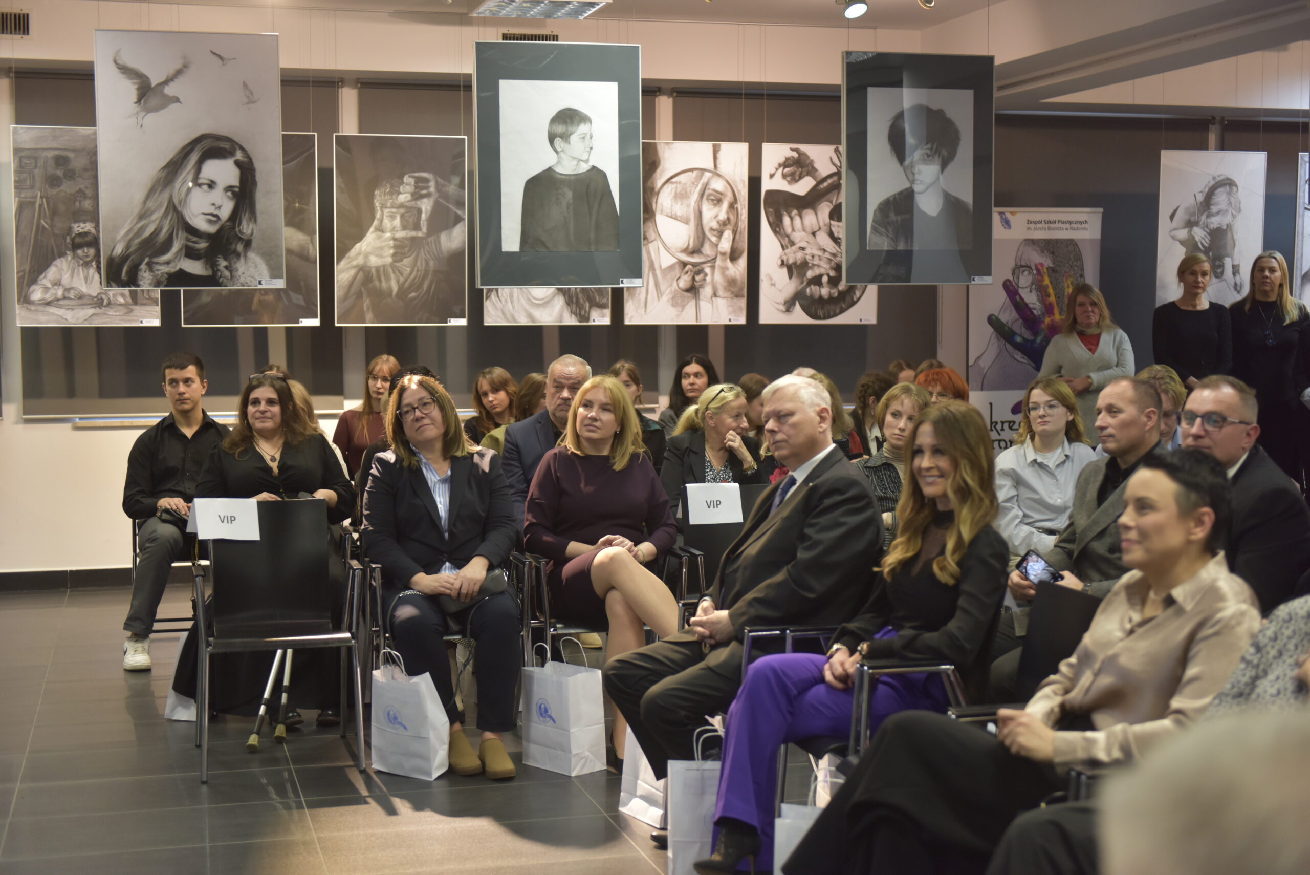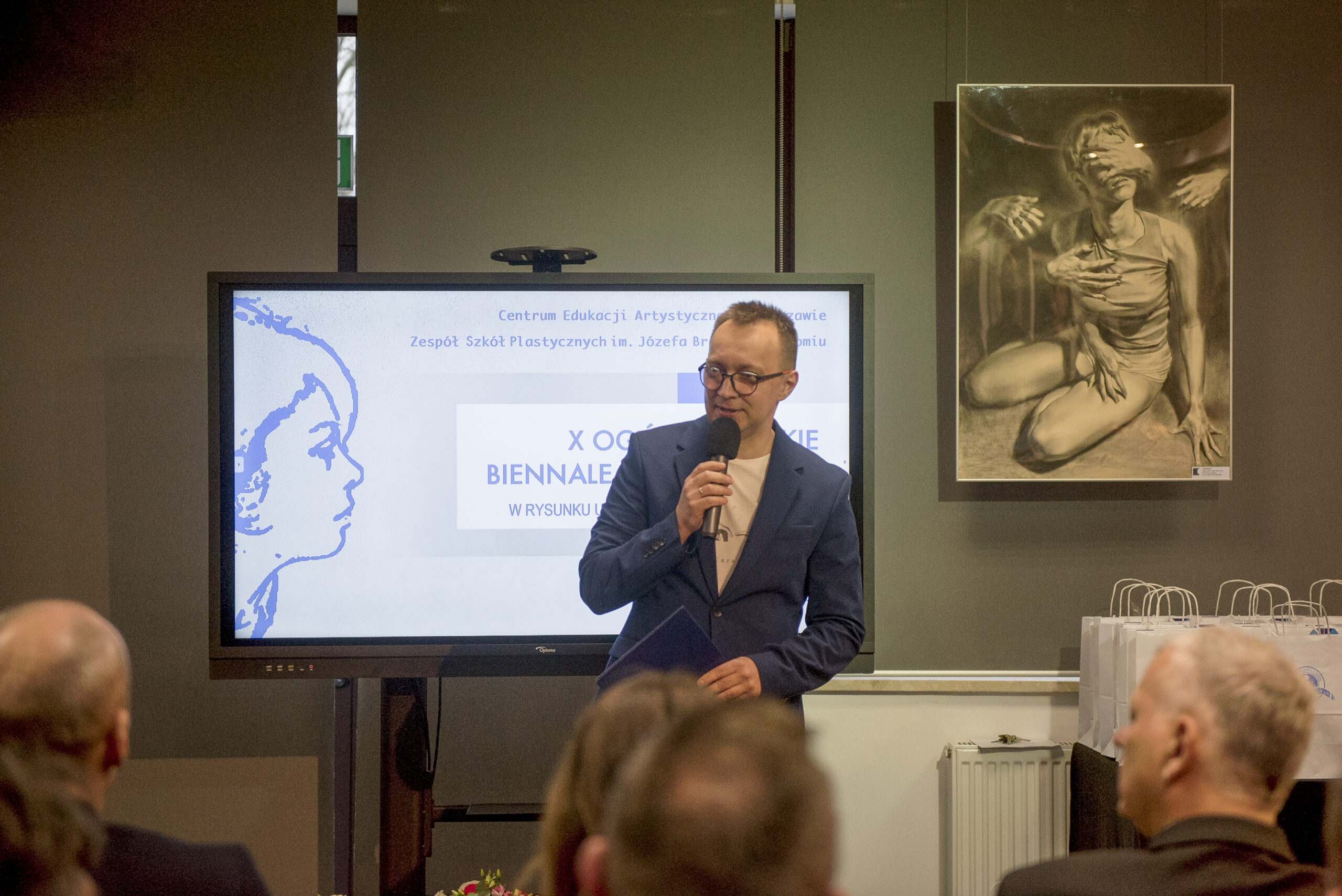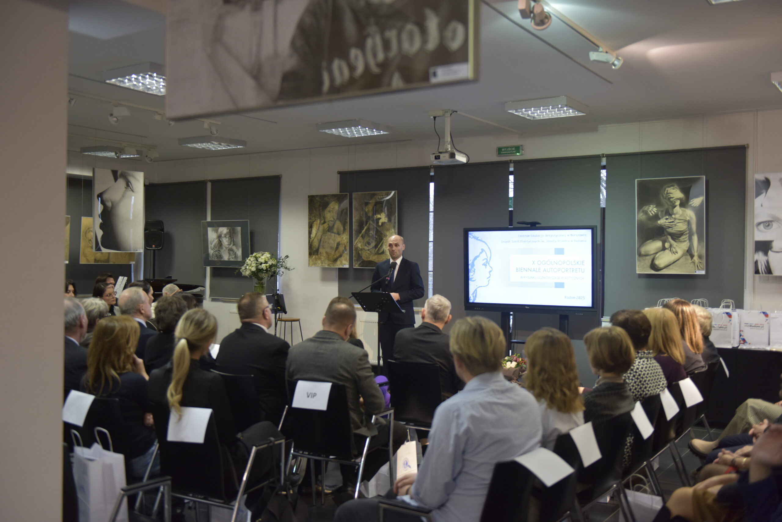 Za nami podsumowanie jubileuszowej 10. edycji Ogólnopolskiego Biennale Autoportretu w Rysunku Uczniów Szkół Plastycznych. Wydarzenie było pełne emocji, wzruszeń i artystycznych spotkań. Już od początku towarzyszyła mu wyjątkowa atmosfera, w którą wprowadziły nas uczennice Liceum Sztuk Plastycznych: Kinga Leszczyńska, Zofia Zamorska, Zofia Mroczek oraz Kalina Pudzianowska, a oprawę muzyczną zapewniła Hanna Dyczkowska. Scenariusz i przygotowanie części artystycznej opracowały nauczycielki języka polskiego – Magdalena Kania-Szary oraz Tatiana Laskowska.