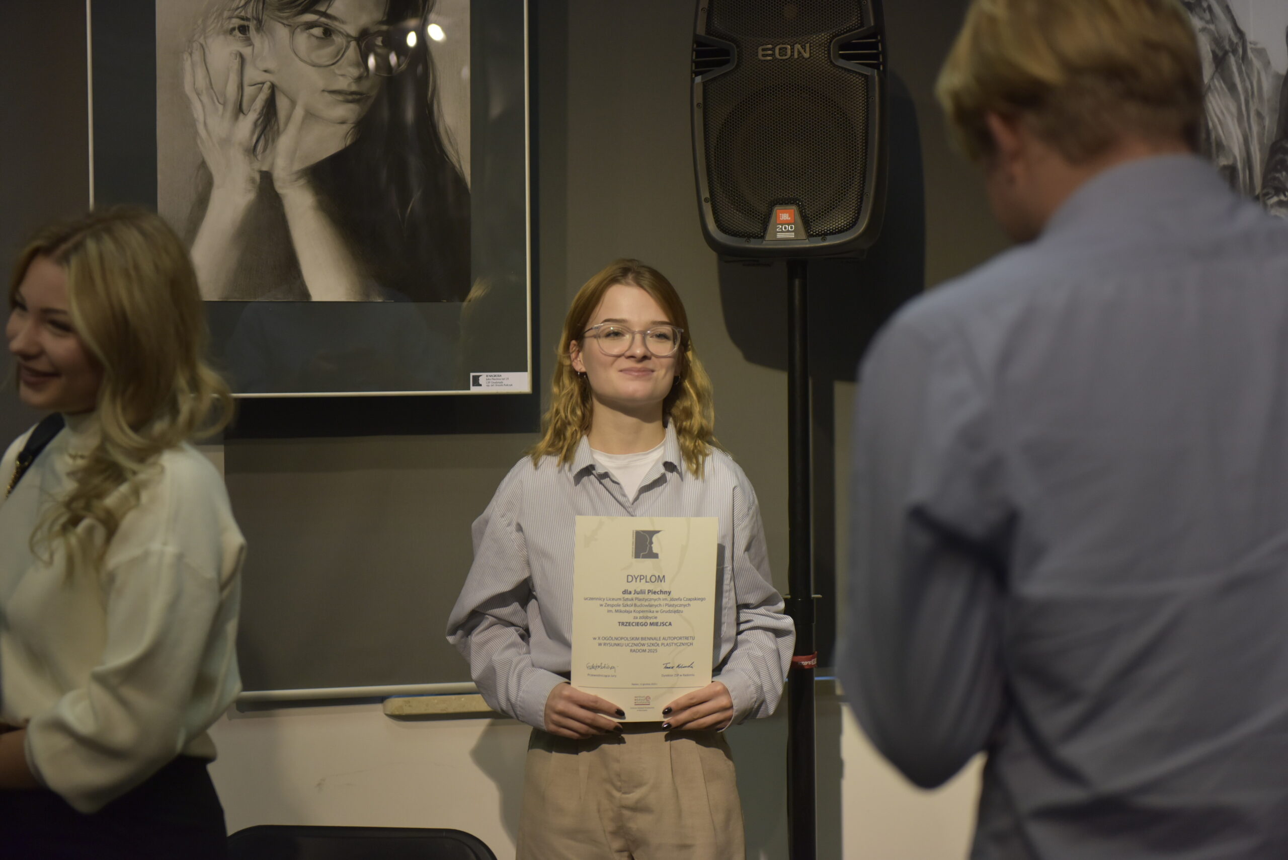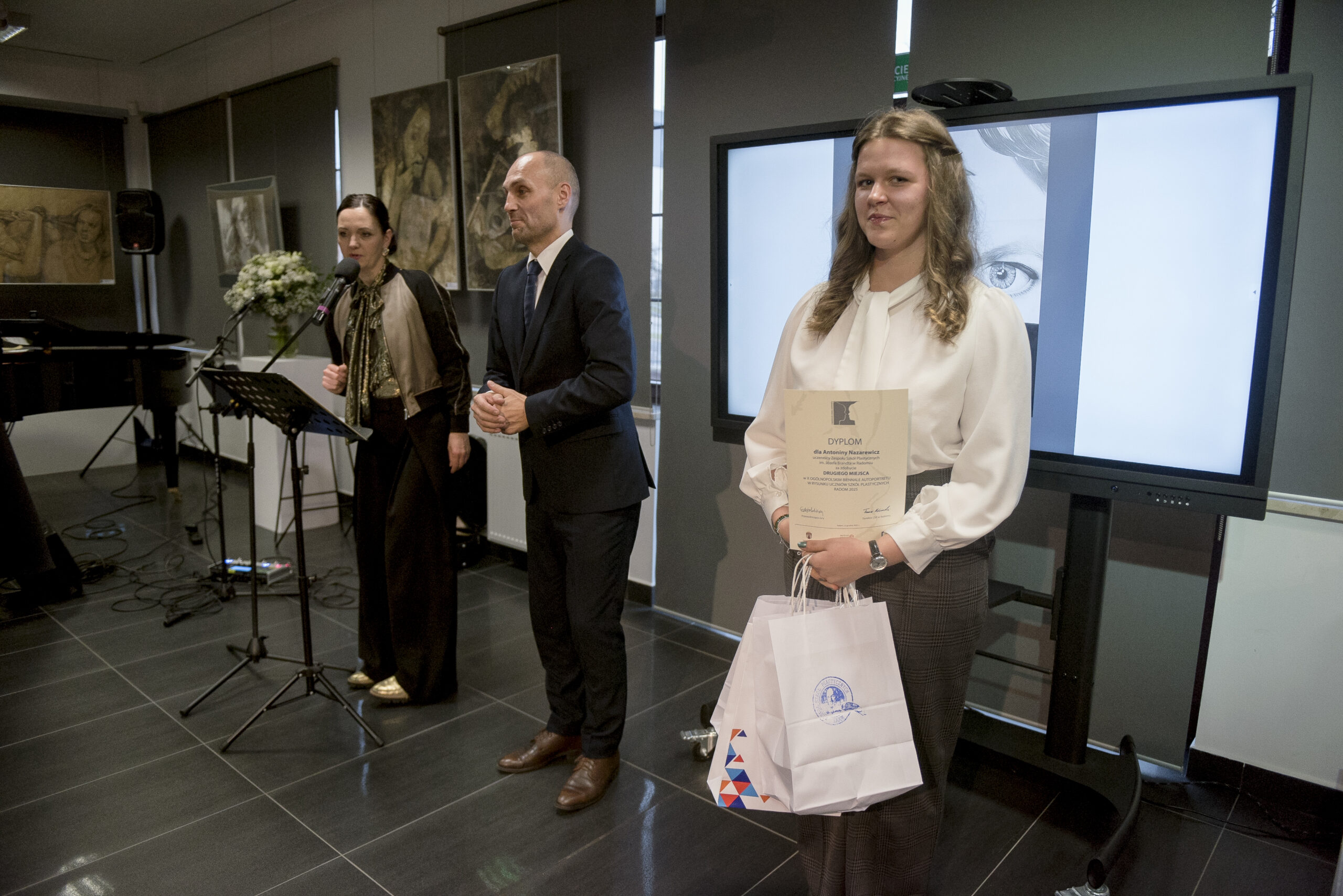Kulminacyjnym momentem wydarzenia było wręczenie nagród, któremu towarzyszyły ogromne emocje. Wśród laureatów znalazła się uczennica naszej szkoły – Antonina Nazarewicz, zdobywczyni II nagrody. Swoją pracę wykonała pod opieką artystyczną Anny Symeli. Serdecznie gratulujemy tego sukcesu!